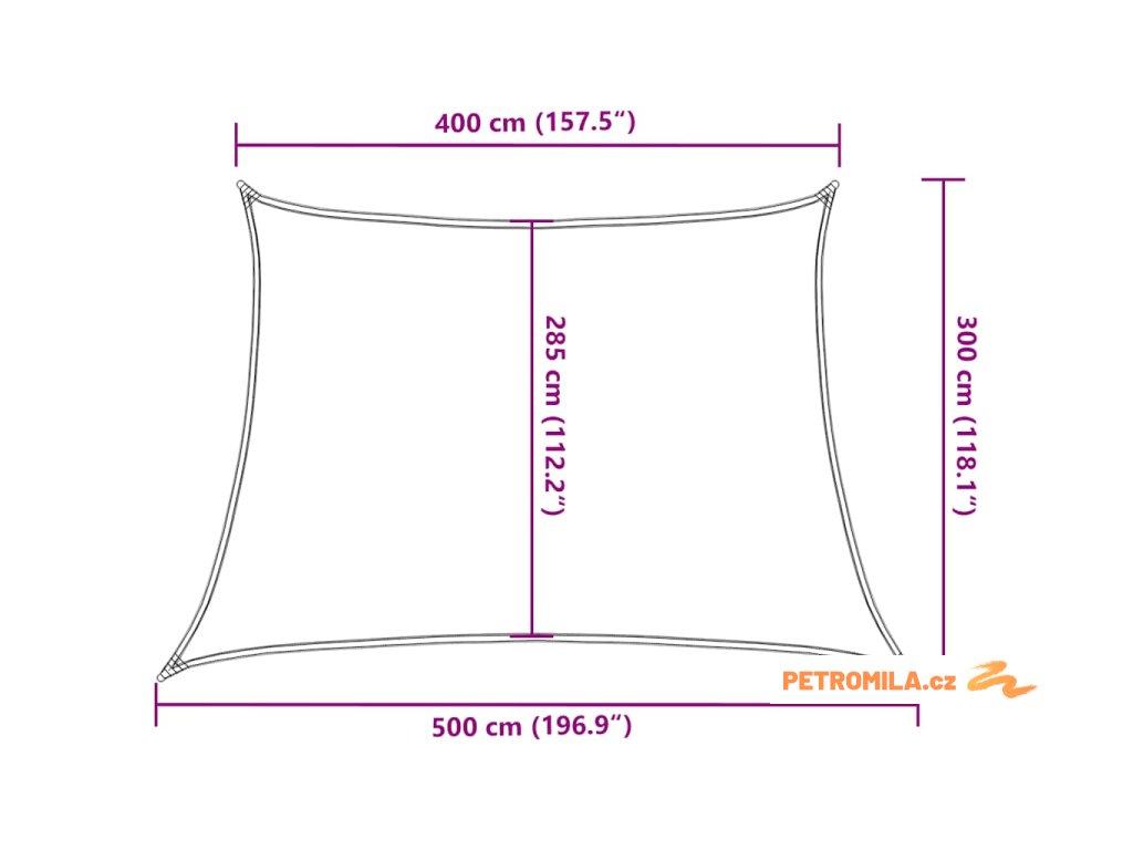 - Snadná montáž: Stínící plachta se snadno sestavuje s nerezovými úchyty v každém rohu a přiloženými provázky.