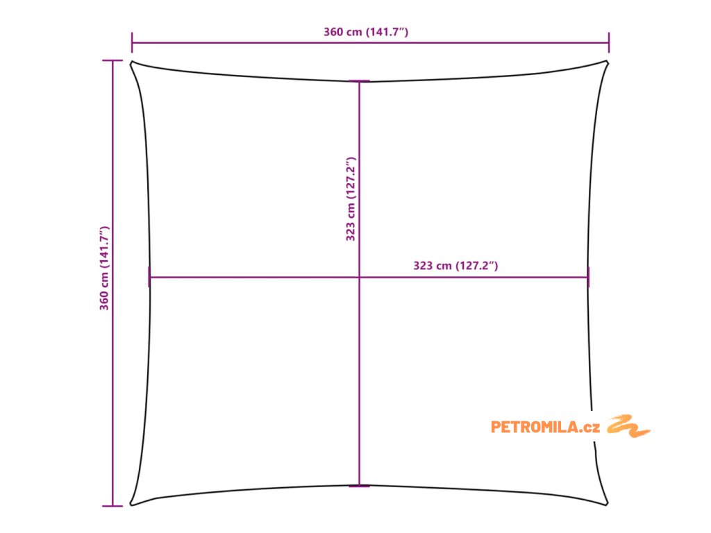 Stínící plachta oxfordská látka čtvercová 3,6 x 3,6 m bílá
