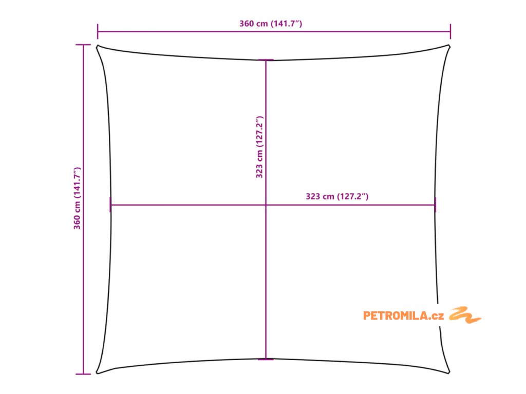 Stínící plachta oxfordská látka čtvercová 3,6x3,6 m antracitová