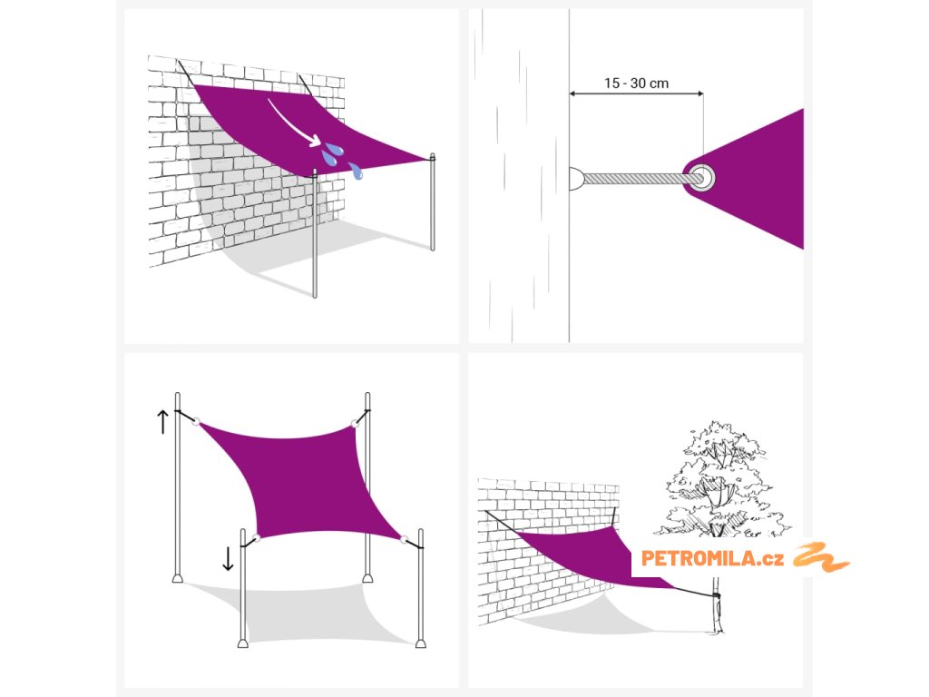 Dobré vědět: Umístěte 2 rohy plachty o něco výše než ostatní, aby voda mohla odtékat.