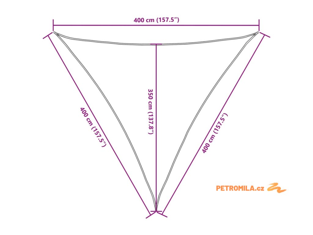 Stínící plachta oxfordská látka trojúhelníková 4 x 4 x 4 m bílá