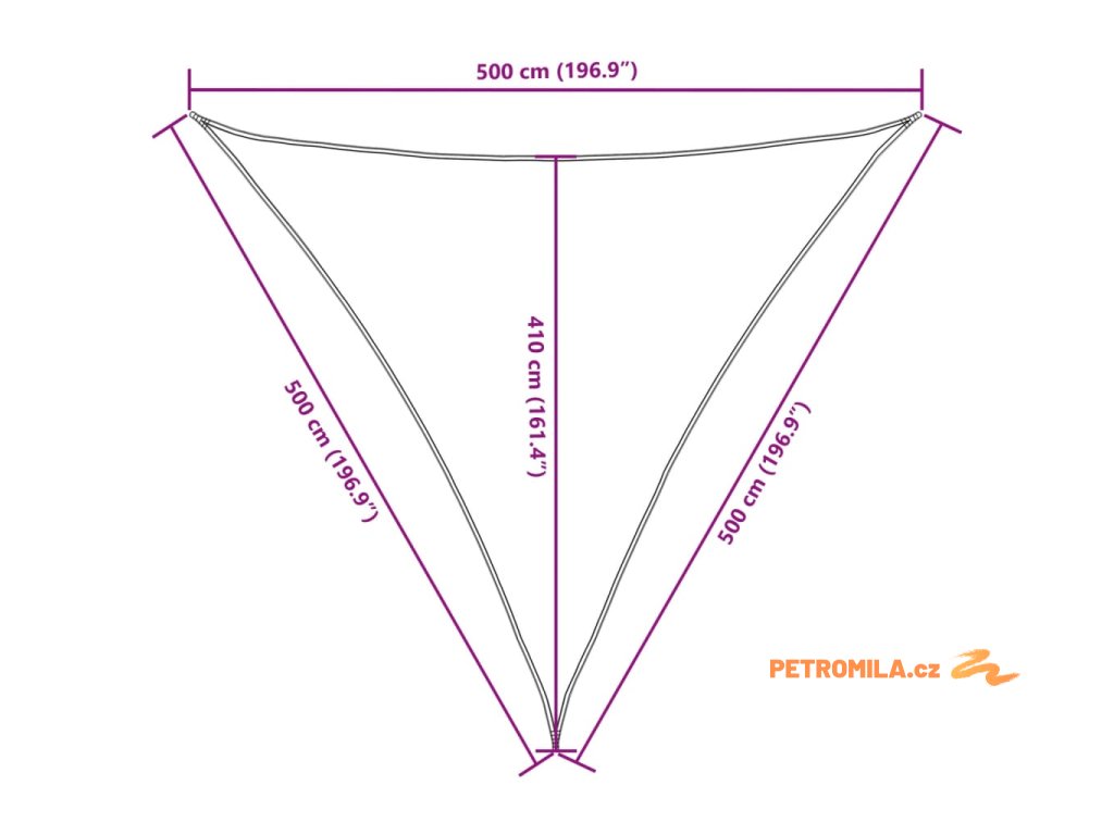 Stínící plachta oxfordská látka trojúhelníková 5x5x5 m oranžová
