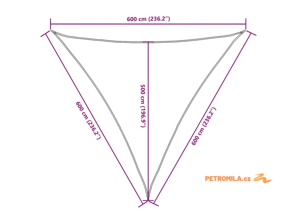 Stínící plachta oxfordská látka trojúhelníková 6 x 6 x 6 m bílá
