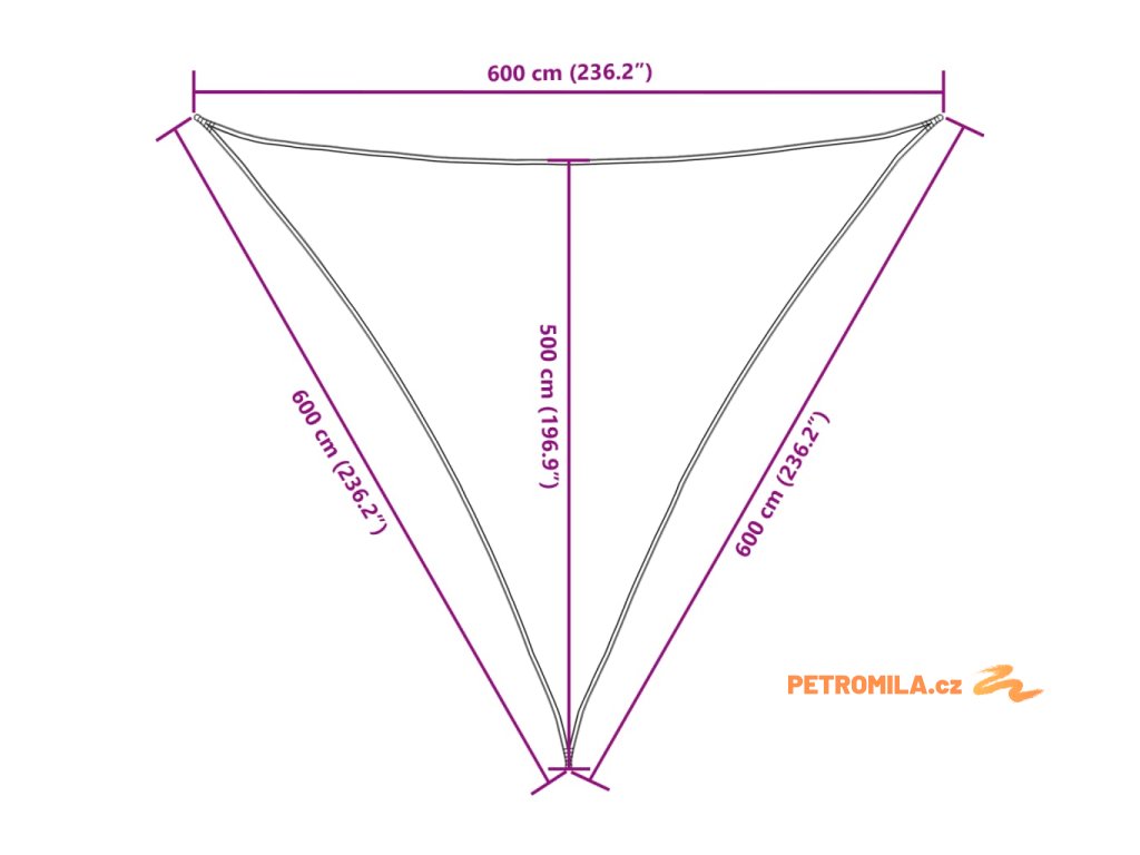 Stínící plachta oxfordská látka trojúhelníková 6x6x6 m taupe