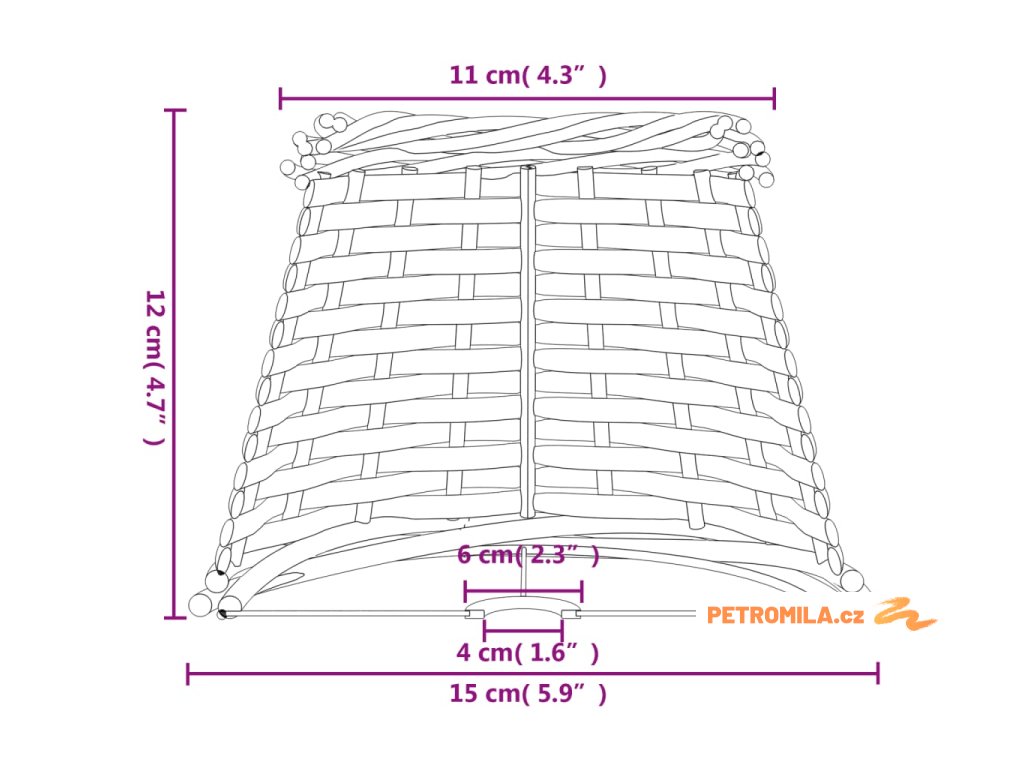 Stínidlo lampy hnědé Ø 15 x 12 cm proutěné