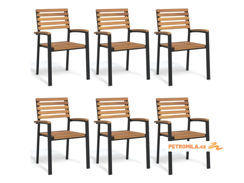 Stohovatelné zahradní židle 6 ks masivní akáciové dřevo a kov