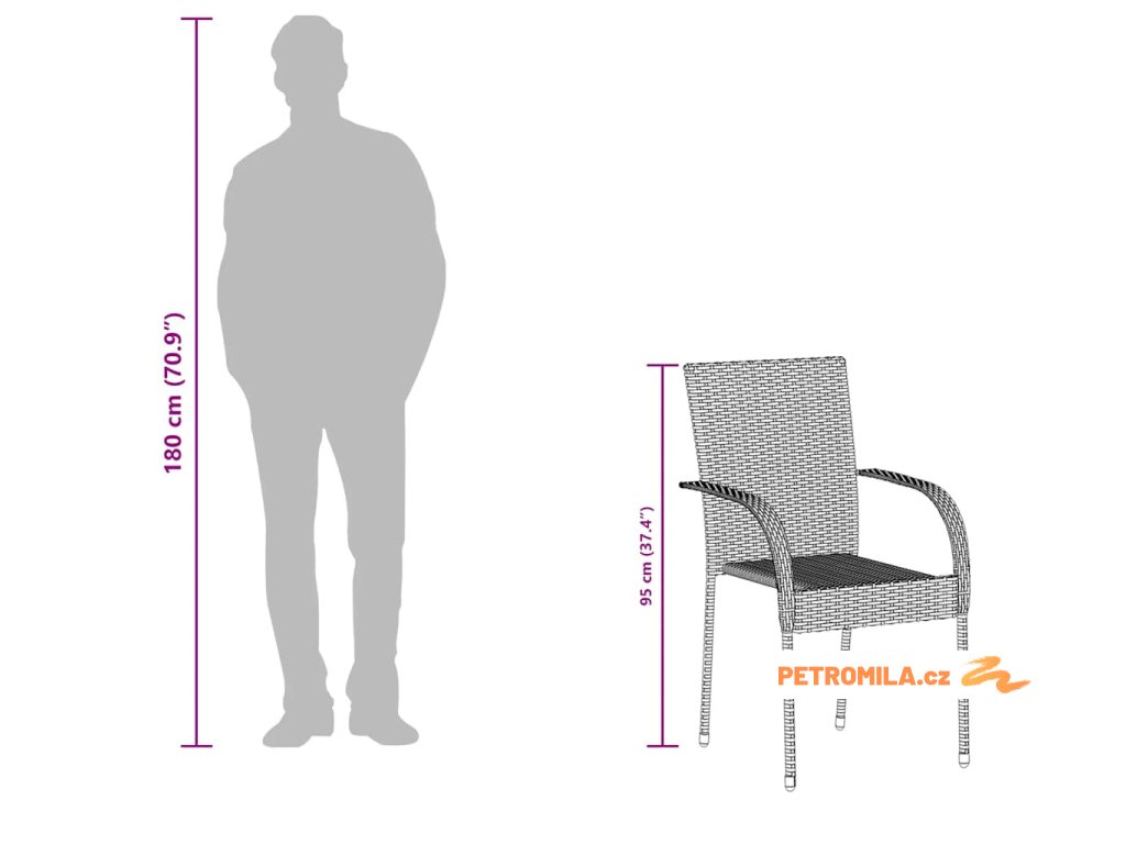 - Materiál: PE ratan, práškově lakovaná ocel