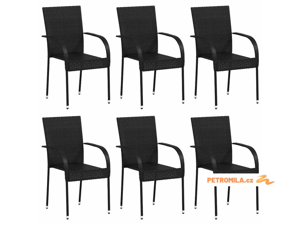 Stohovatelné zahradní židle 6 ks polyratan černé
