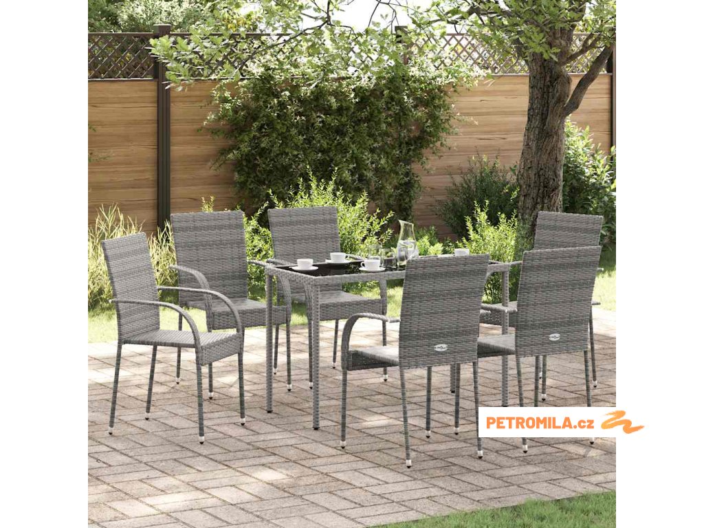 Zahradní jídelní souprava 7 pcs Šedá polyratan