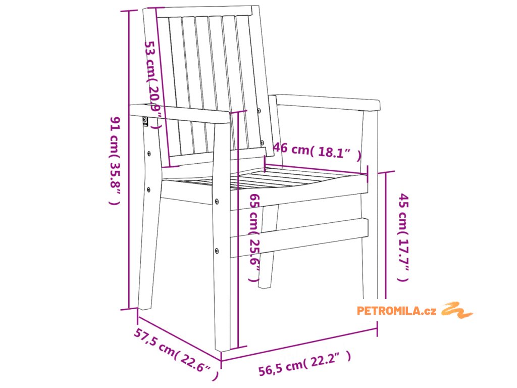 - Rozměry (každý kus): 56,5 x 57,5 x 91 cm (Š x H x V)