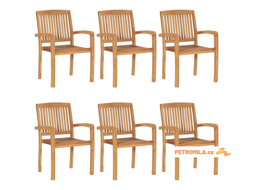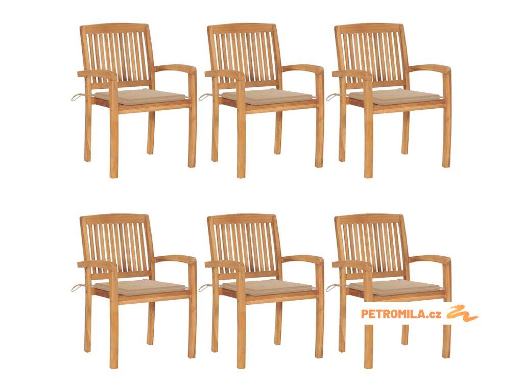 Stohovatelné zahradní židle s poduškami 6 ks masivní teak