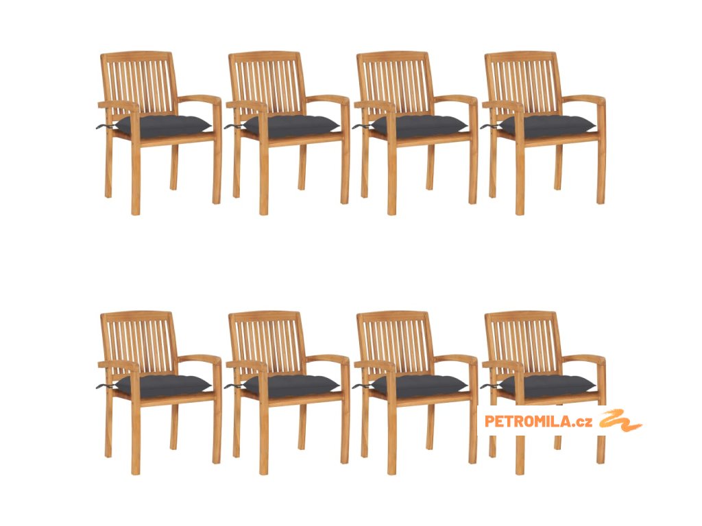 Stohovatelné zahradní židle s poduškami 8 ks masivní teak