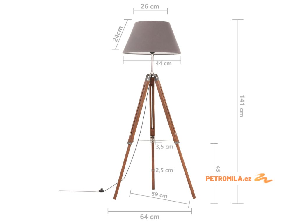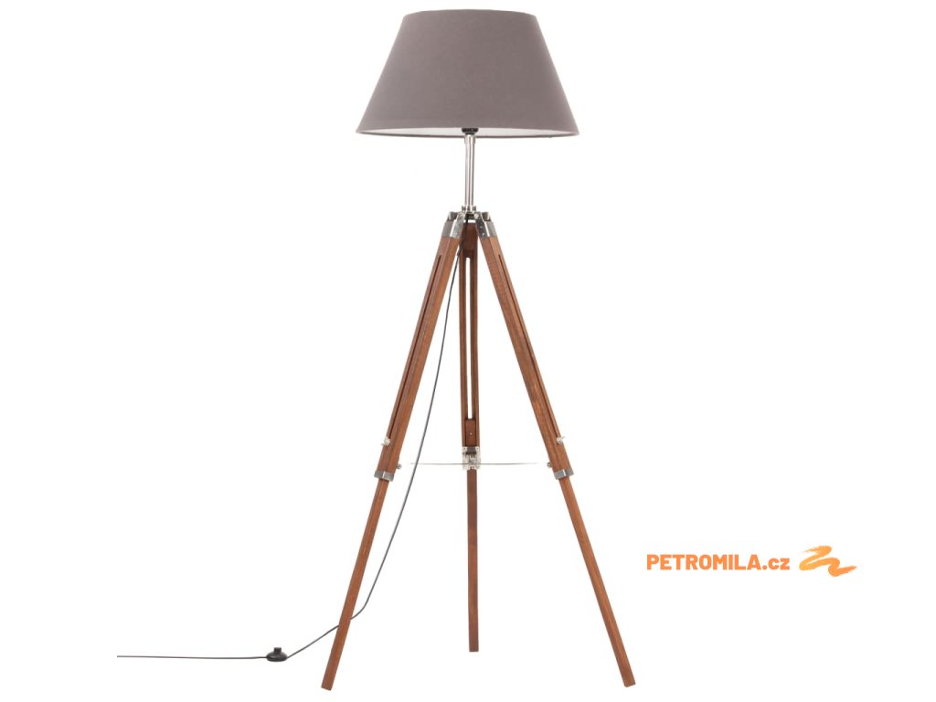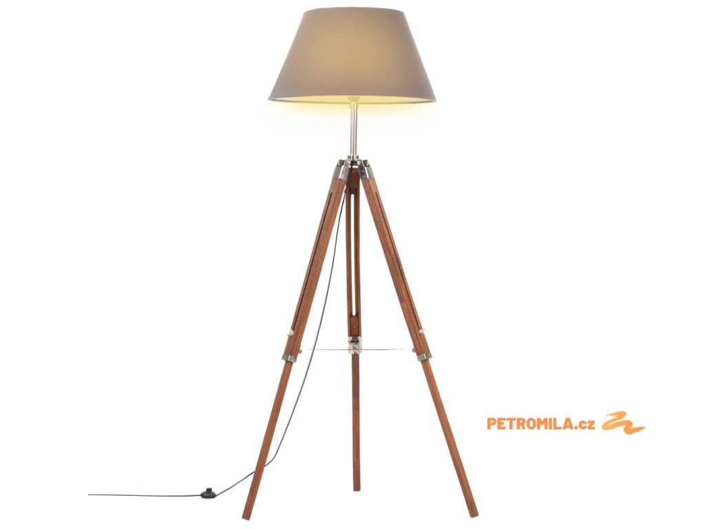 Stojací lampa stativ medově hnědá a šedá masivní teak 141 cm
