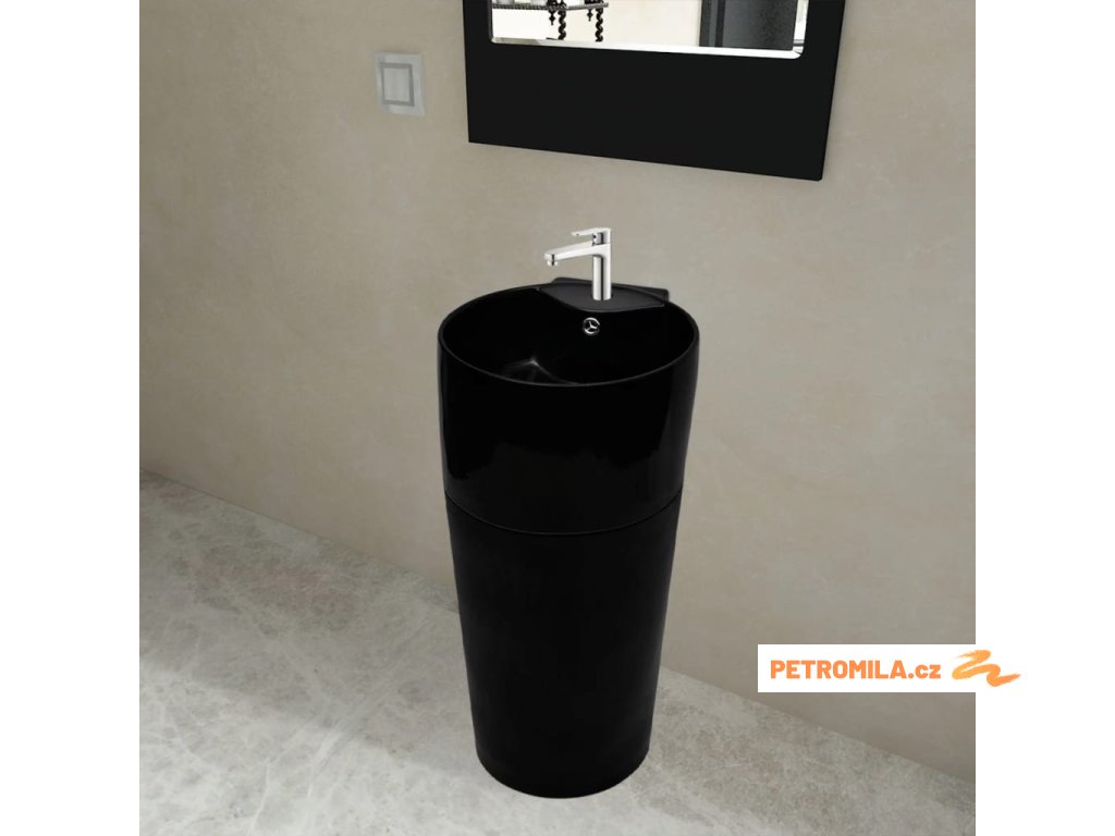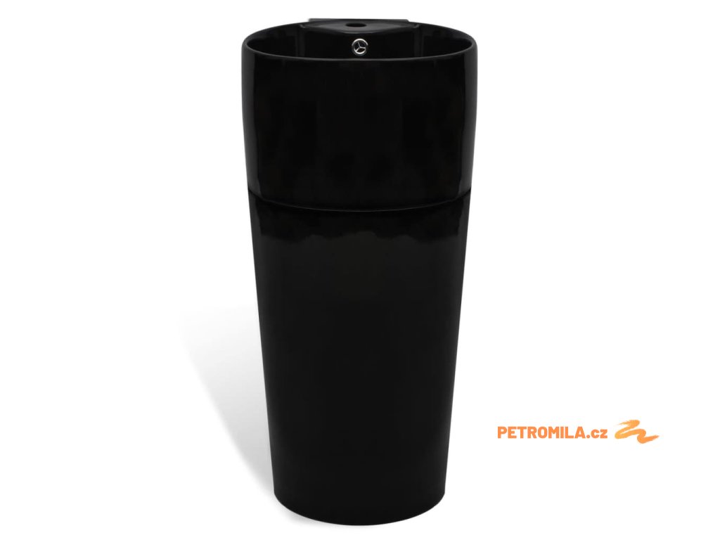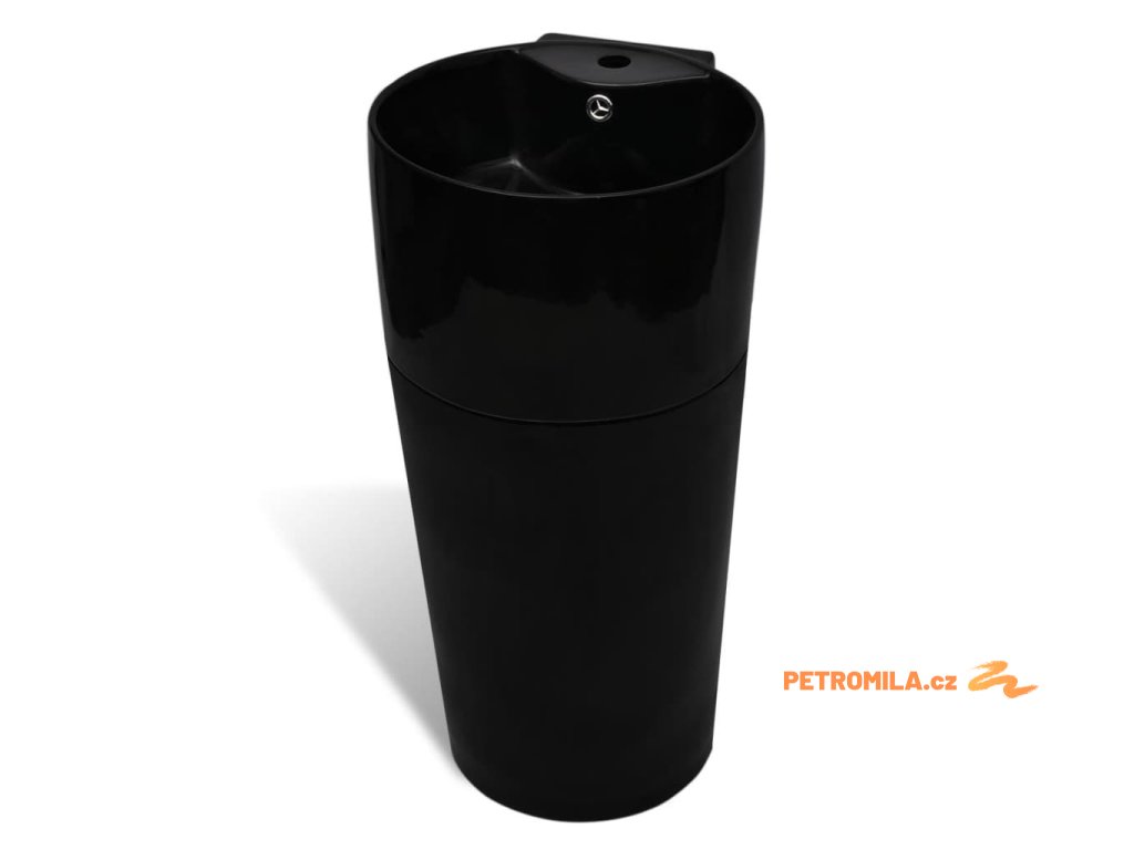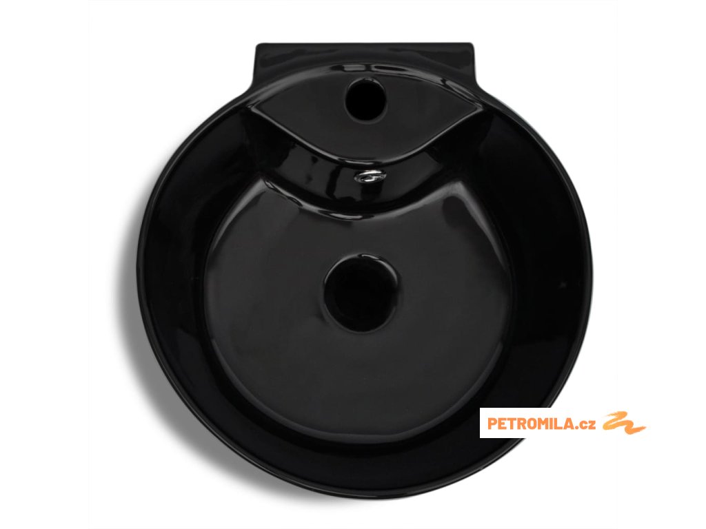 Stojací umyvadlo keramické kulaté černé, otvor na baterií, přepad