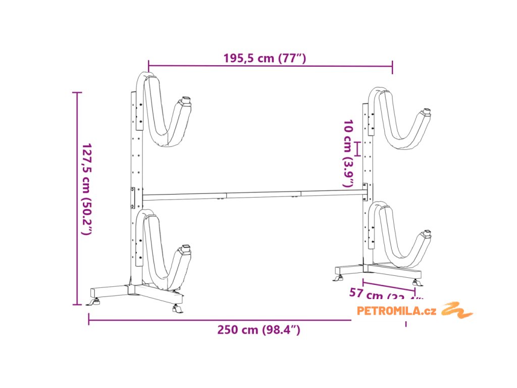 Stojan na 2 kajaky 250 x 57 x 127,5 cm ocel