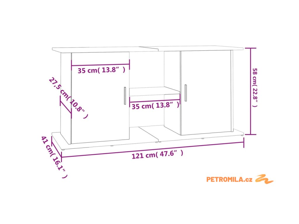 Stojan na akvárium, dub sonoma, 121 x 41 x 58 cm, konstrukční dřevo