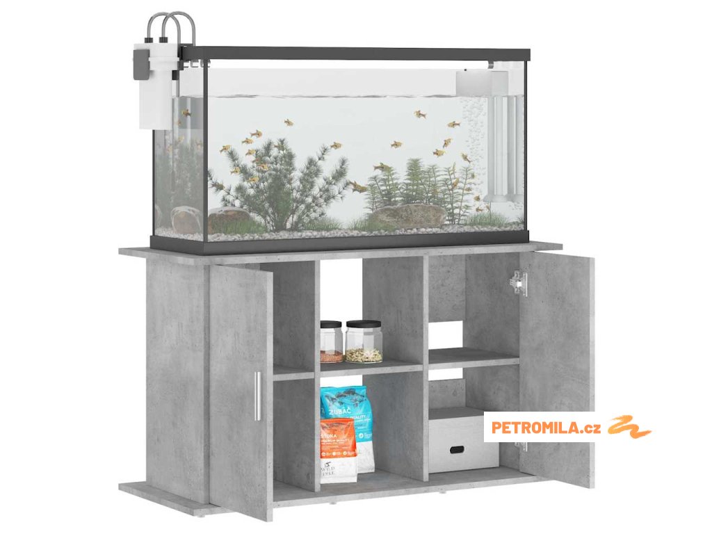 - Úložný prostor: Skříňka na akvárium má dostatek úložného prostoru, horní část je určena pro umístění akvária a přihrádky a police slouží k pohodlnému uložení krmiva pro ryby, síťky, dezinfekčních prostředků, úpravy vody a dalších předmětů.