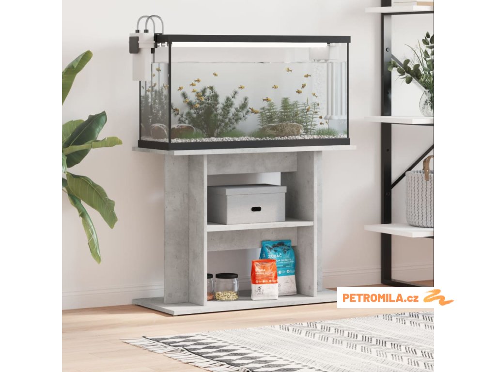 Stojan na akvárium betonový šedý 80 x 35 x 60 cm, dřevo
