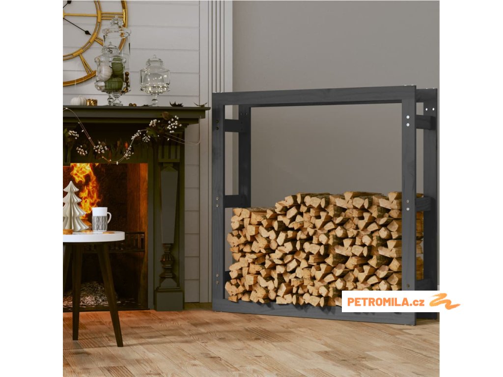 Stojan na dřevo šedý 100x25x100 cm masivní borovice
