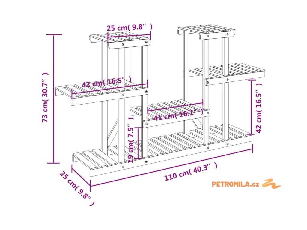 Stojan na květiny 110 x 25 x 73 cm masivní jedlové dřevo