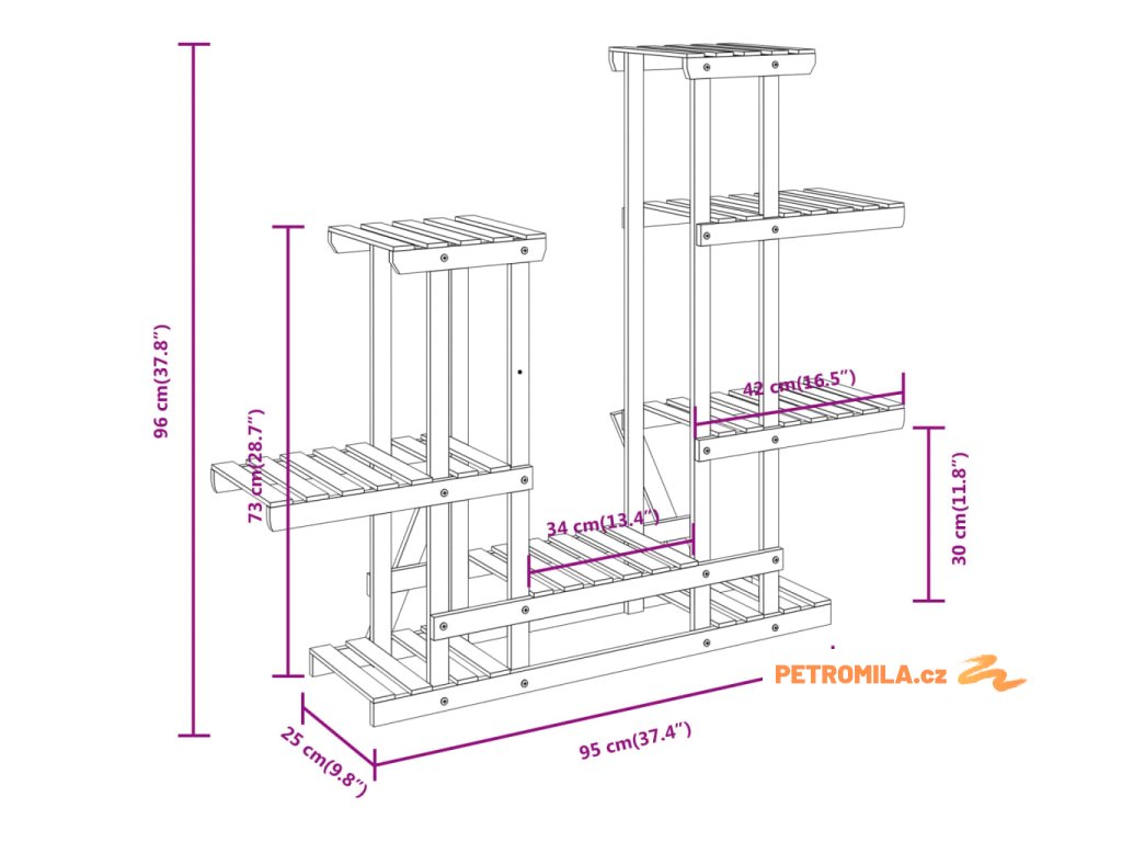 Stojan na květiny 95 x 25 x 96 cm masivní jedlové dřevo