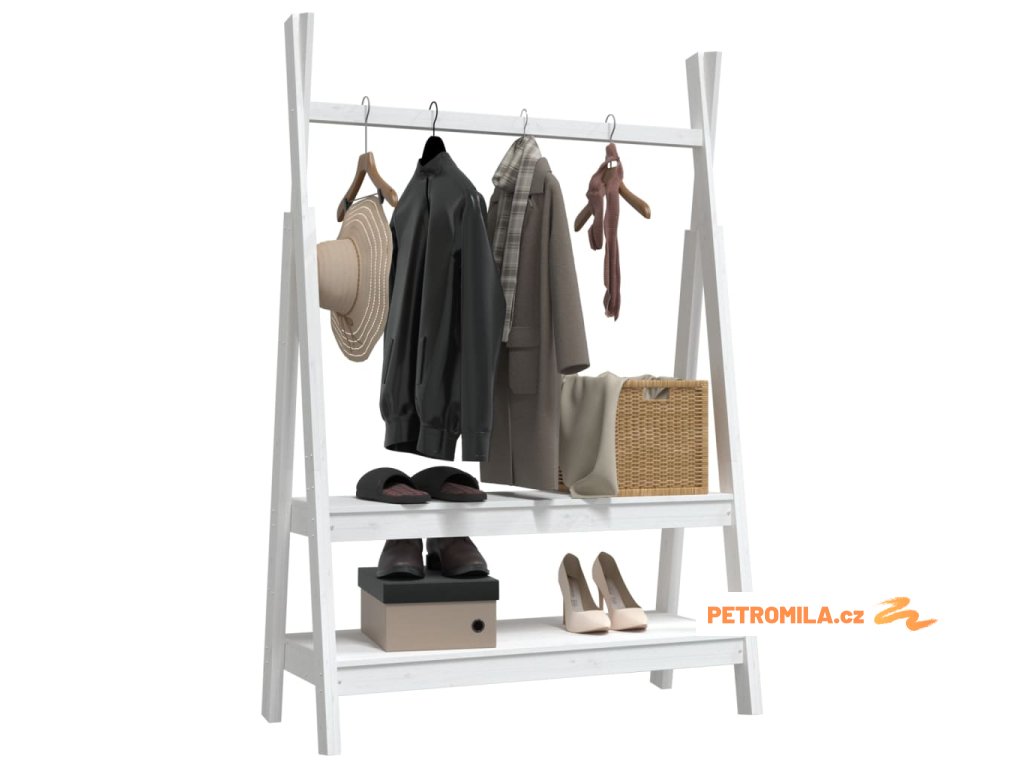 Stojan na oblečení bílý 100x45,5x150 cm masivní borové dřevo