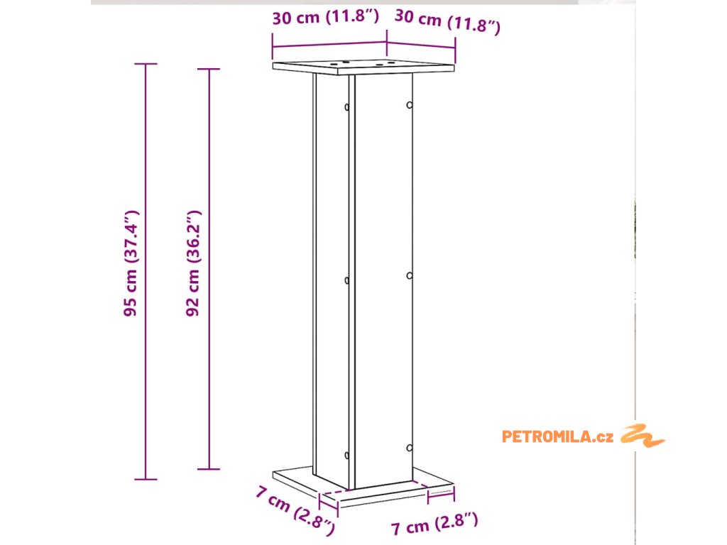 - Celkové rozměry: 30 x 30 x 95 cm (D x Š x V)