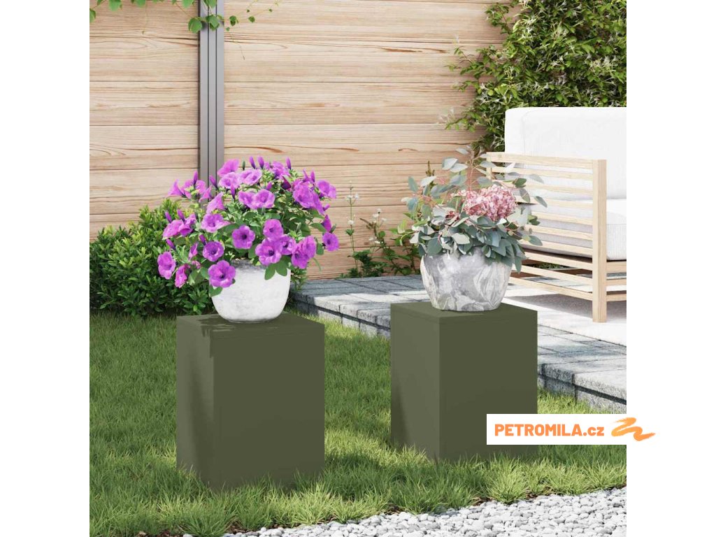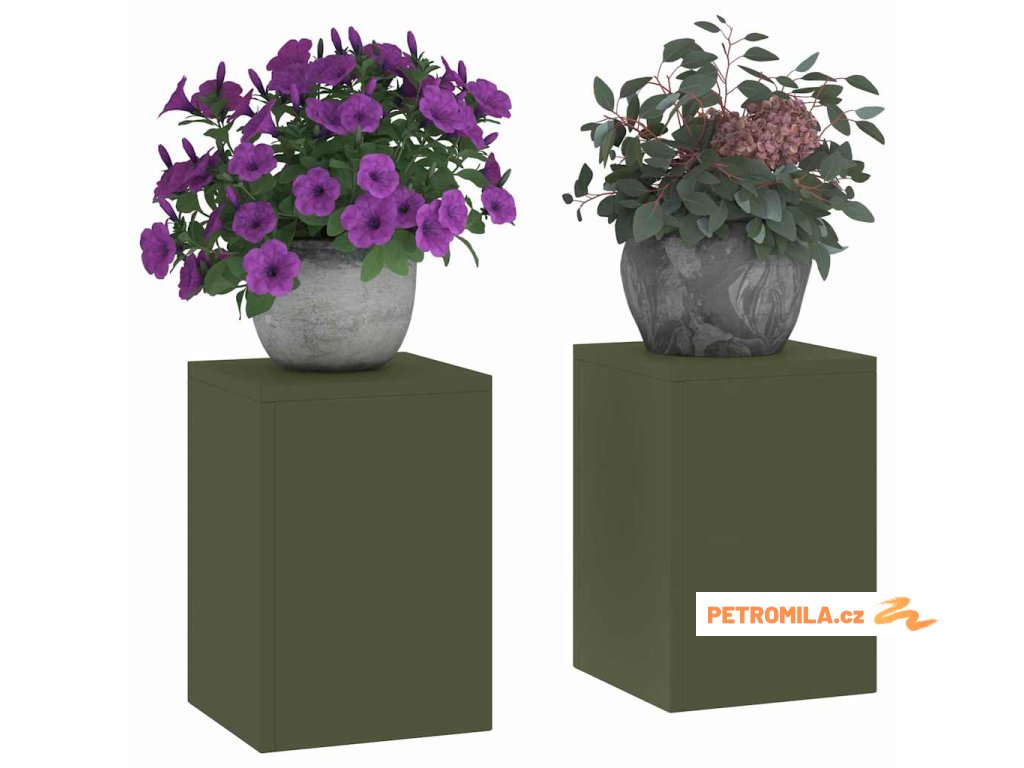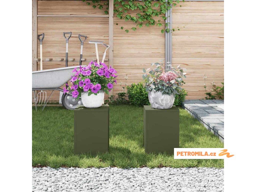 Stojan na rostliny 2 pcs Olivově zelená 24 x 24 x 35 cm Ocel