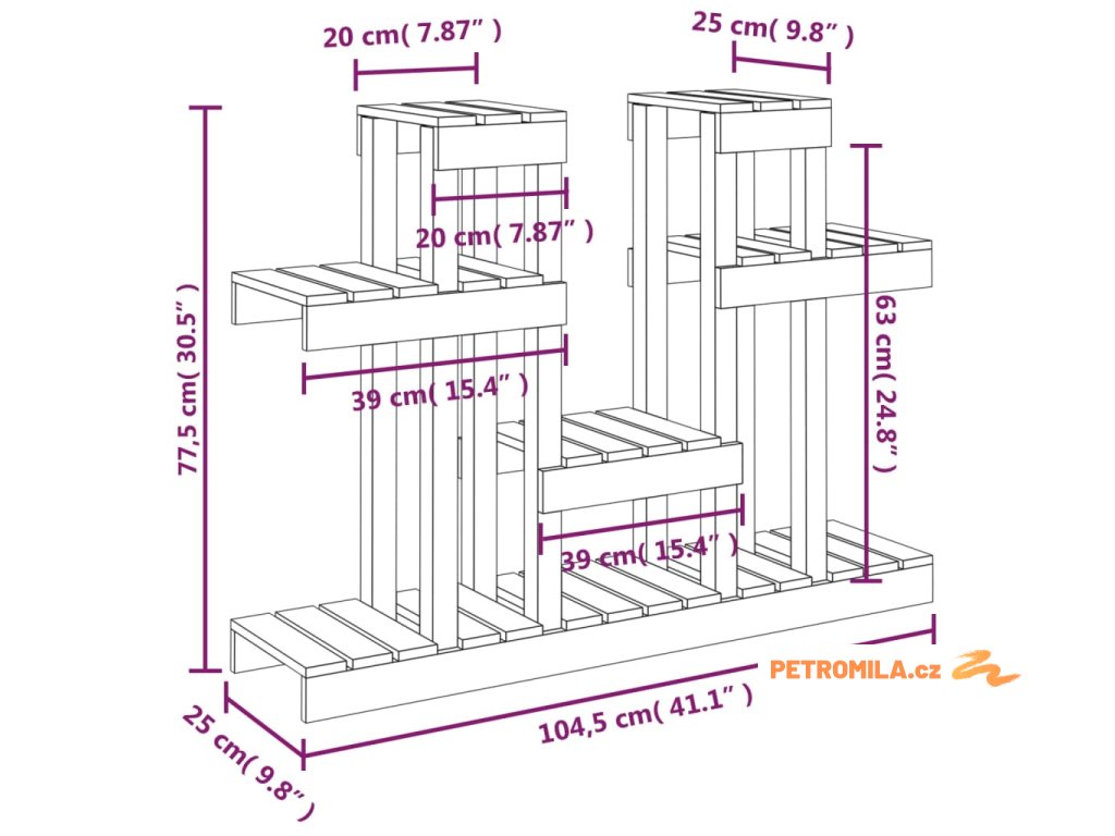 Stojan na rostliny bílý 104,5x25x77,5 cm masivní borové dřevo