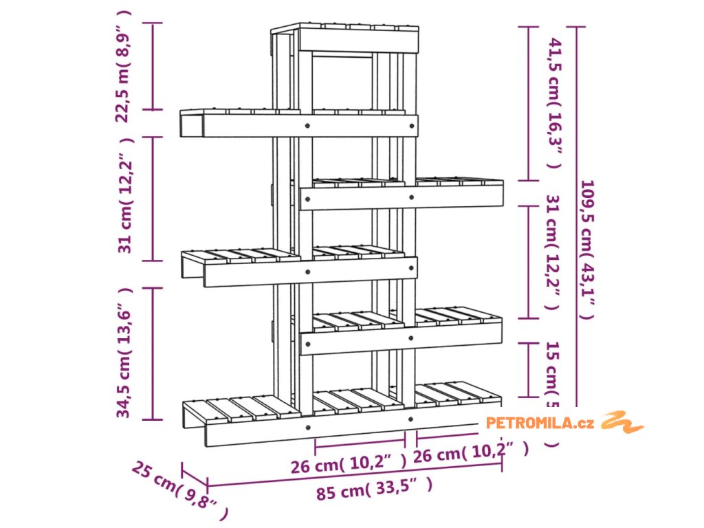 - Jedinečný design: Jedinečný design stojanu na rostliny krásně doplní vaše květiny a pomůže rostlinám získat více slunečního světla a lépe růst. Tento venkovní stojan na rostliny bude krásným doplňkem vašeho obývacího pokoje, terasy a zahrady.