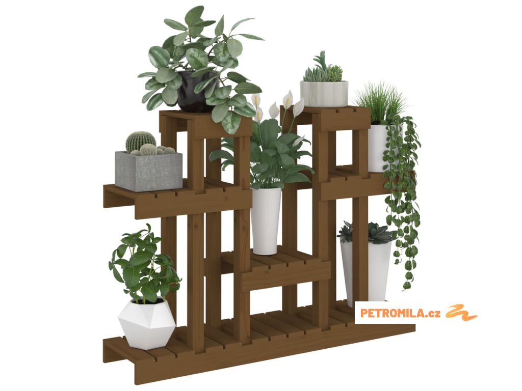 Stojan na rostliny medově hnědý 104,5x25x77,5 cm masiv borovice