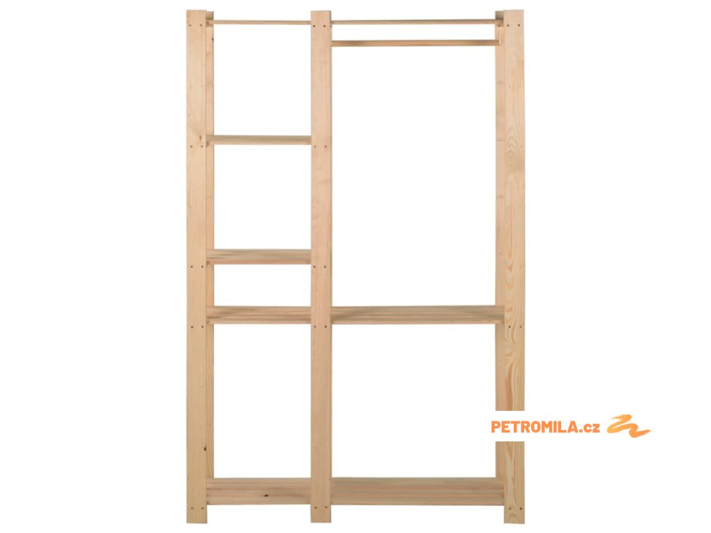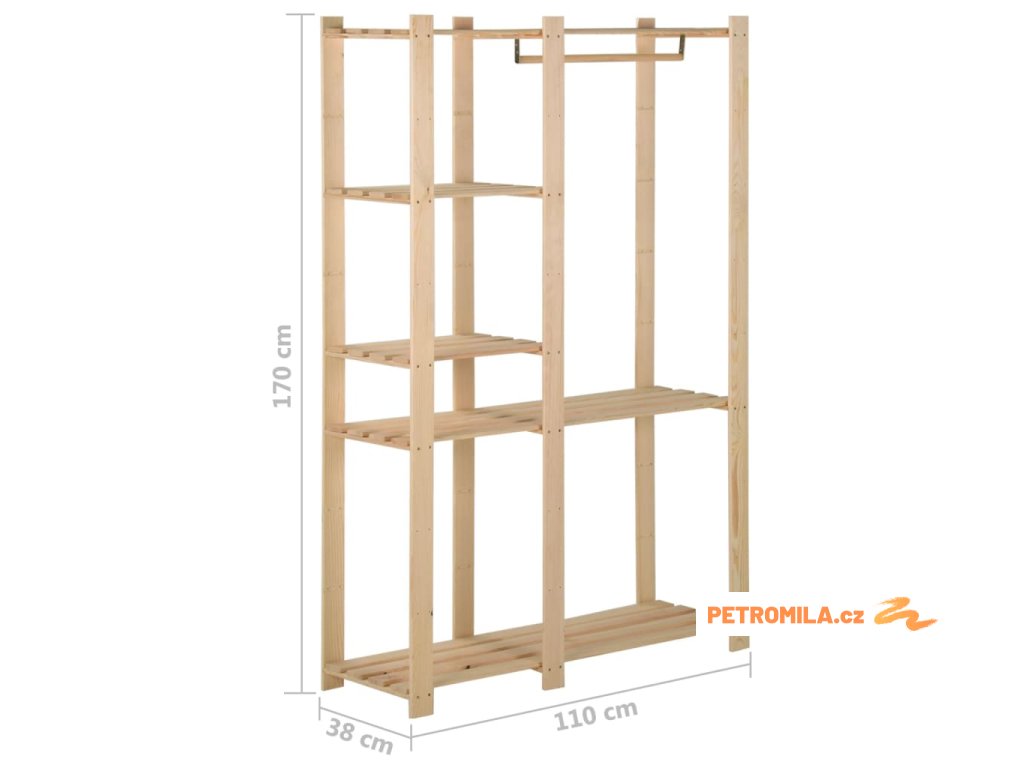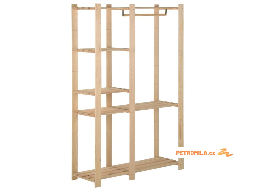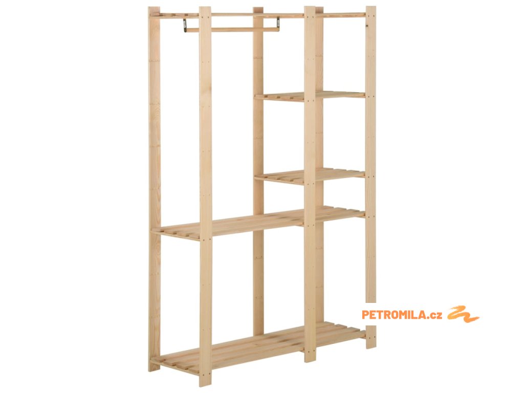 S tímto stojanem na šaty získáte další úložný prostor, s jehož pomocí udržíte v ložnici nebo v šatně pořádek. Stojan je zhotoven z masivního borového dřeva, je tedy stabilní a má dlouhou životnost. Má 5 polic, do kterých můžete uložit boty, trička, krabice atd. Šatní tyč vám umožní uspořádat si delší oblečení, kabáty, bundy atd. Jeho jednoduchý, ale stylový design dodá vaší ložnici nádech elegantního kouzla.