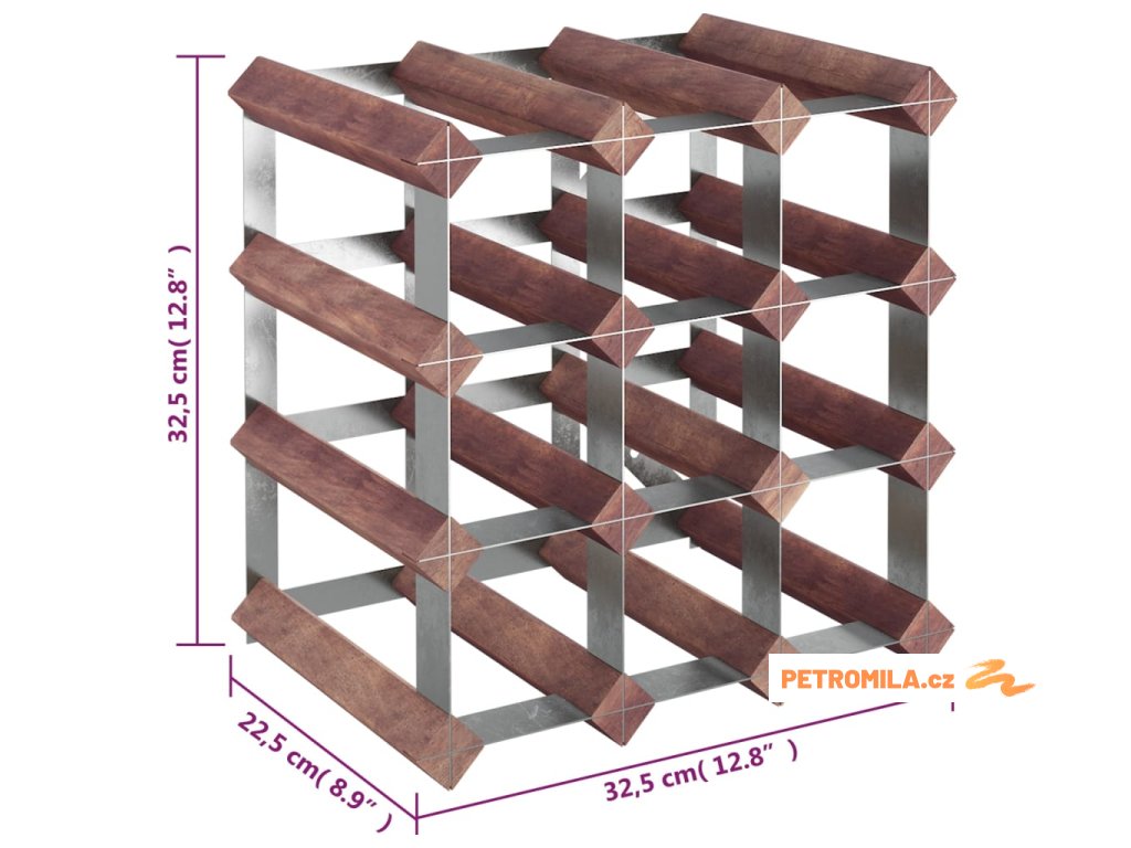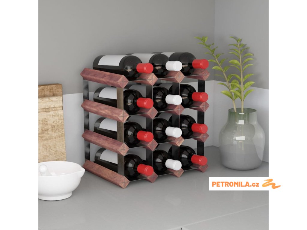 Stojan na víno na 12 lahví hnědý masivní borové dřevo