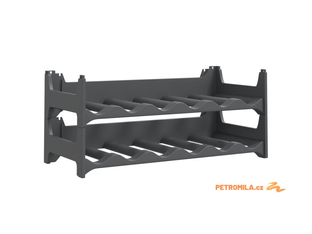 - Stohovatelná konstrukce: Pro úsporu místa lze stojany na láhve pevně naskládat na sebe.