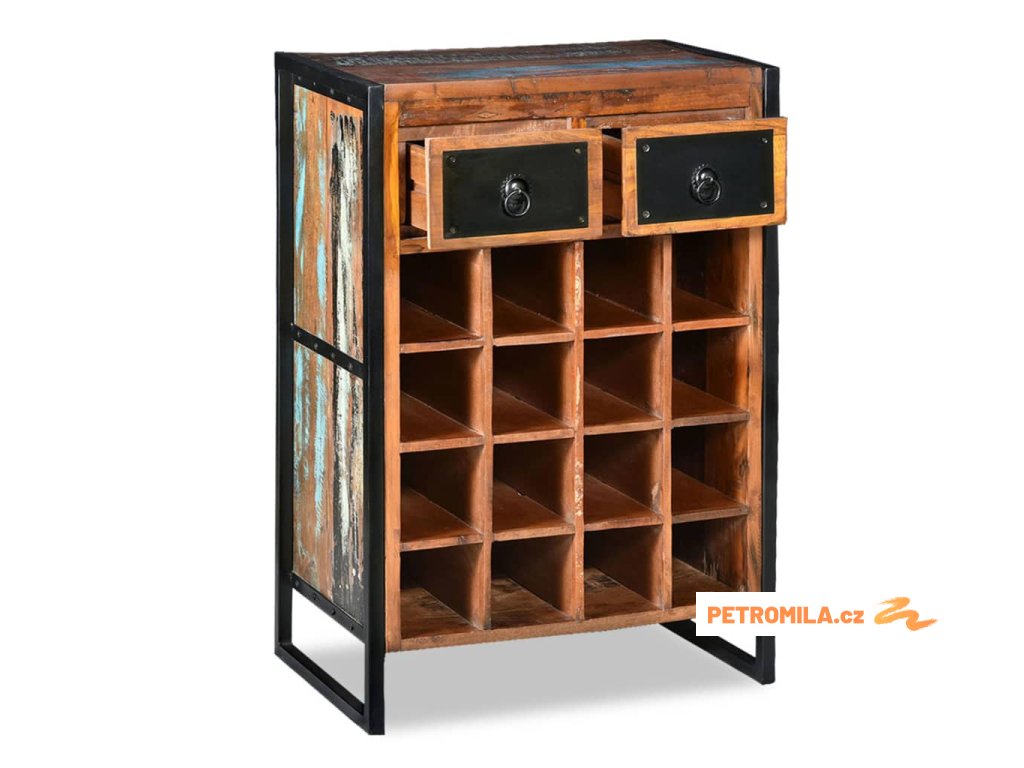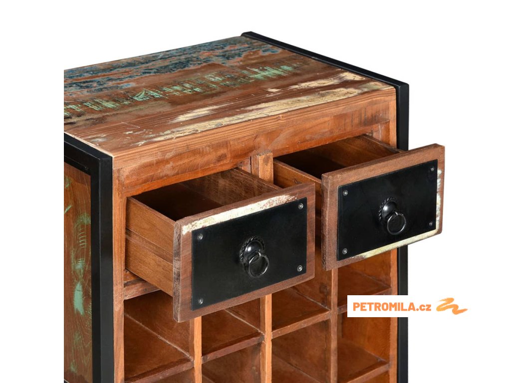 Tato skříňka na víno je vyrobená z recyklovaného dřeva, které je nejen pevné a odolné, ale také krásně vypadá. Recyklované dřevo má charakteristiky různých dřevin, jako jsou teak, mangovník, akácie a další. Každý jednotlivý kus nábytku je jedinečný a lehce odlišný od ostatních. Známky opotřebení a zřetelná kresba dřeva zaručují unikátní vzhled každého stojanu a přispívají k jejich okouzlujícímu vintage stylu. Stojan na víno je celý ručně dělaný a každá fáze jeho výroby byla provedená s největší pečlivostí, ať už se jedná o leštění, natírání anebo lakování. Nábytek je už smontovaný, další montáž tedy není třeba.