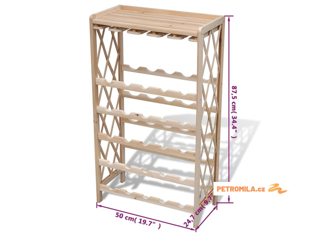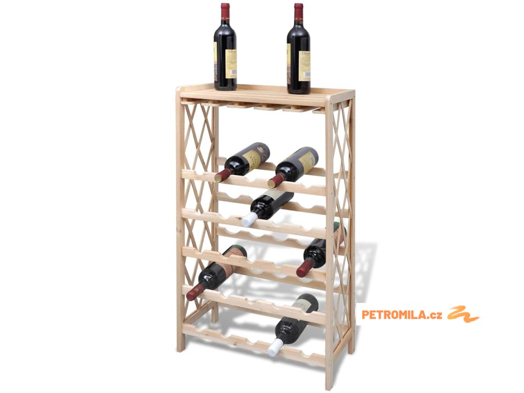 Regál je vyrobený z masivního dřeva, je tedy velmi odolný a vydrží vám sloužit po dlouhá léta. Přírodní dřevo rovněž můžete natřít nebo nalakovat, aby se stojan hodil do vašeho stylu zařízení. Pojme až 25 lahví vína.