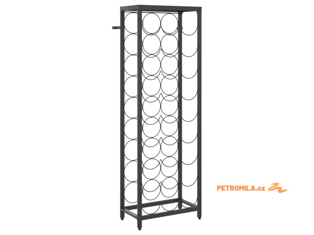 Stojan na víno na 27 lahví černý 34 x 18 x 100 cm tepané železo