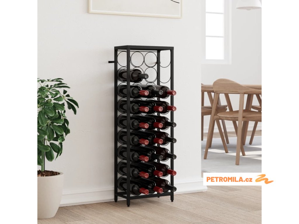 - Velká kapacita: Tento držák na víno pojme až 27 lahví, čímž maximalizuje úložný prostor a udržuje pořádek.