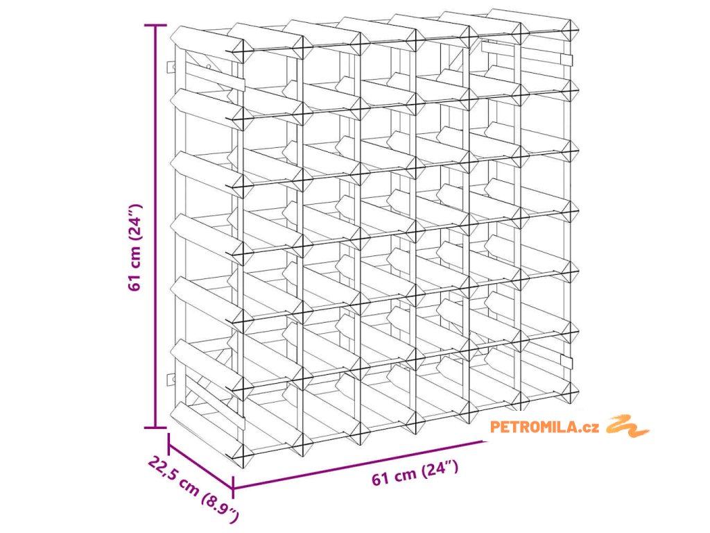 Stojan na víno pojme až 42 lahví vína. Jeho jednoduchý a úhledný design vnese do vaší domácnosti rustikální kouzlo. Výborně se také hodí jako dárek pro milovníky vína mezi vašimi přáteli či známými. Jelikož je vyrobený z pozinkované oceli a masivního borového dřeva, je mimořádně stabilní a odolný.