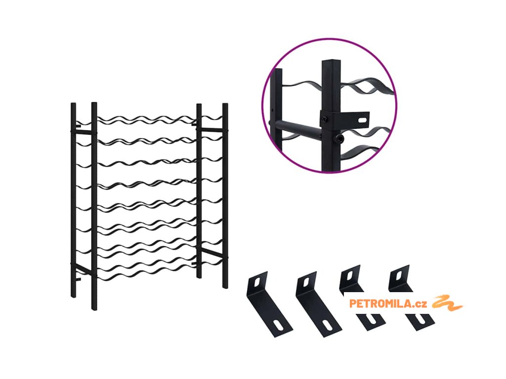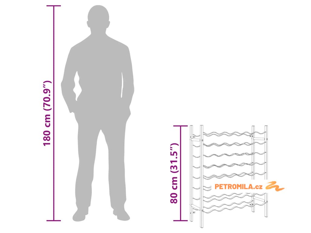 Tento stojan na víno pojme až 48 lahví vína. Je vyrobený z práškově lakovaného kovu, který se snadno udržuje a zaručuje dlouhou životnost. Je to skvělý dárek pro vaše blízké a přátele, kteří jsou znalci a milovníky dobrého vína. Tento stojan také umožňuje stohovat lahve vína na sebe. Sestavení je snadné.