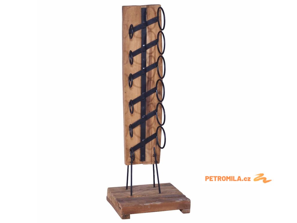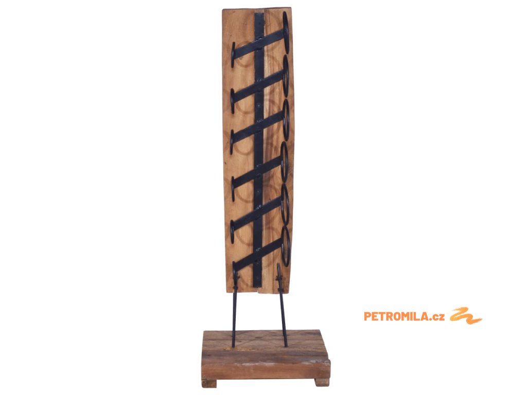 Tento podlahový stojan na láhve je vyrobený z vybraného teakového dřeva s velmi stabilní základnou. Železná tyč a držáky spolehlivě udrží vaše lahve. Kombinace přírodního dřeva a kovu zapůsobí svým retro šarmem. Pojme 6 lahví vína standardní velikosti a krásně se vyjímá v každé kuchyni nebo obývacím pokoji.
