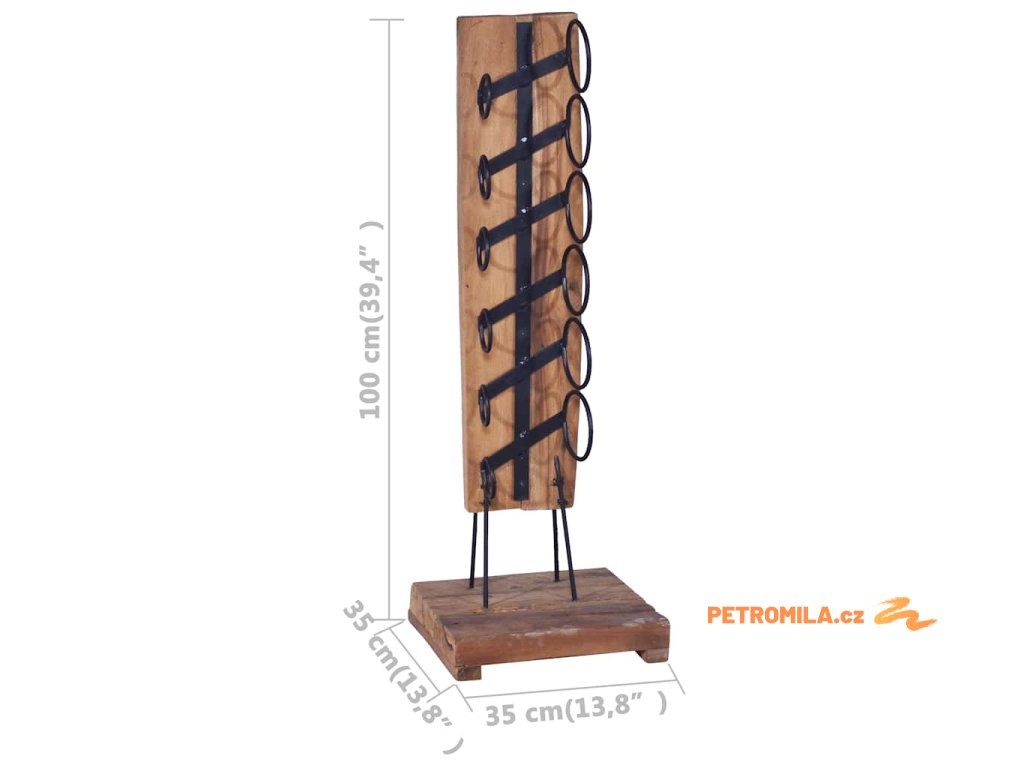 Stojan na víno na 6 lahví 35 x 35 x 100 cm masivní teakové dřevo