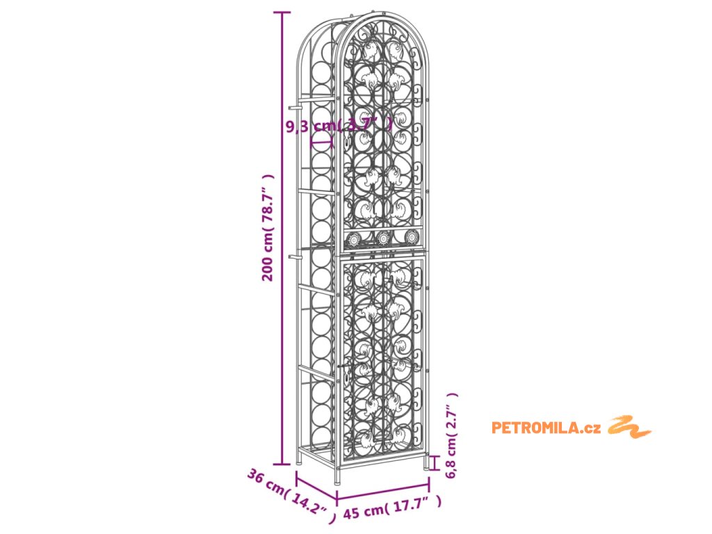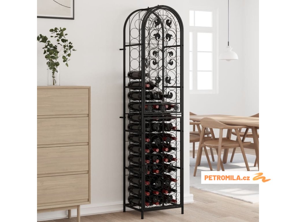 Stojan na víno na 73 lahví černý 45 x 36 x 200 cm tepané železo