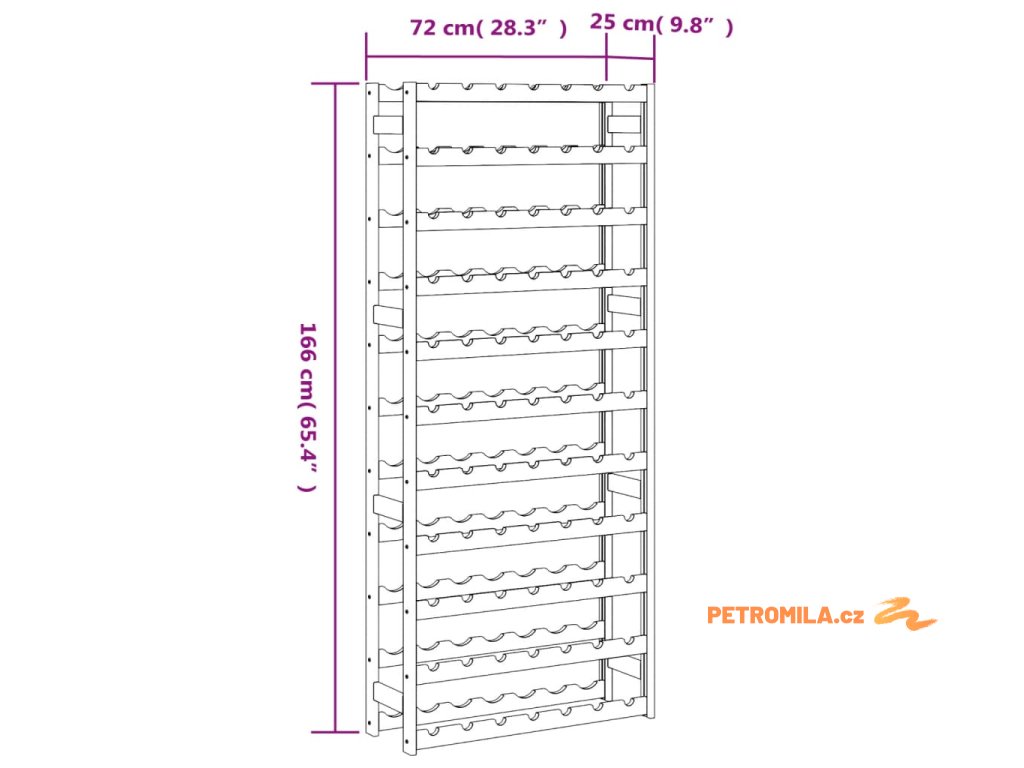 Stojan na víno na 77 lahví hnědý masivní borové dřevo