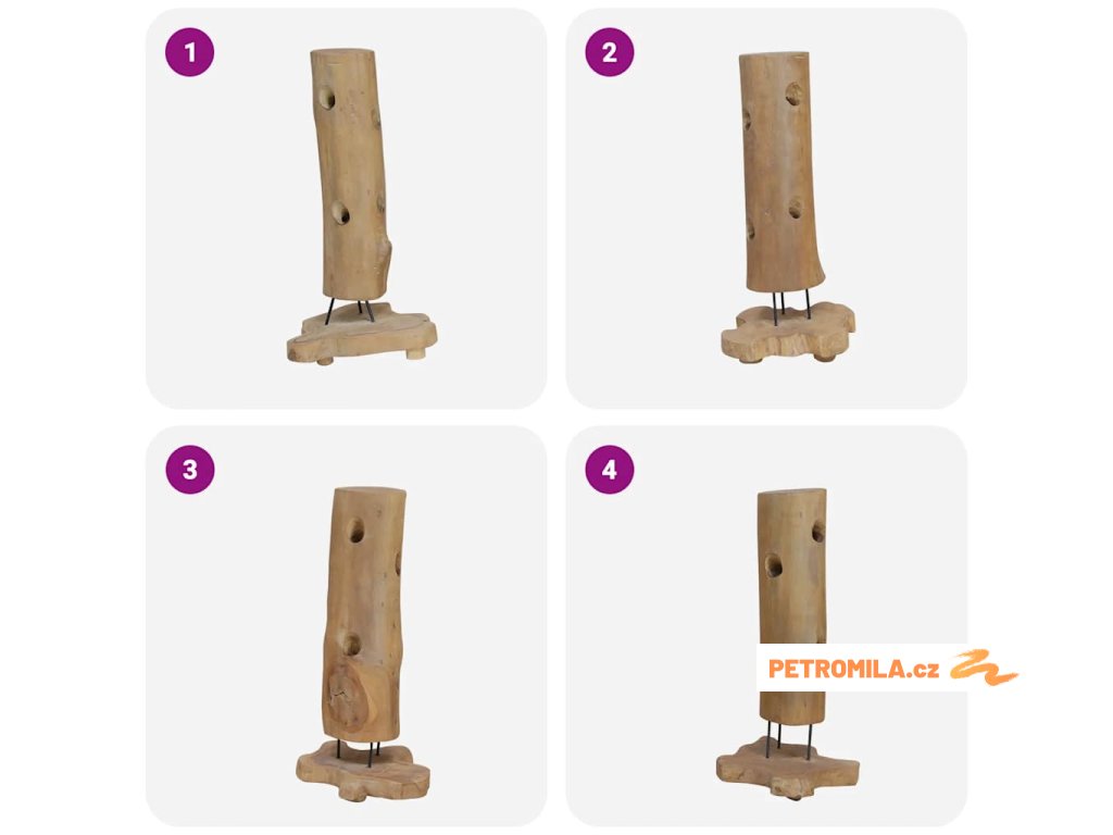 - Materiál: teakové dřevo namíchané s akáciovým a mindi dřevem, železná tyč