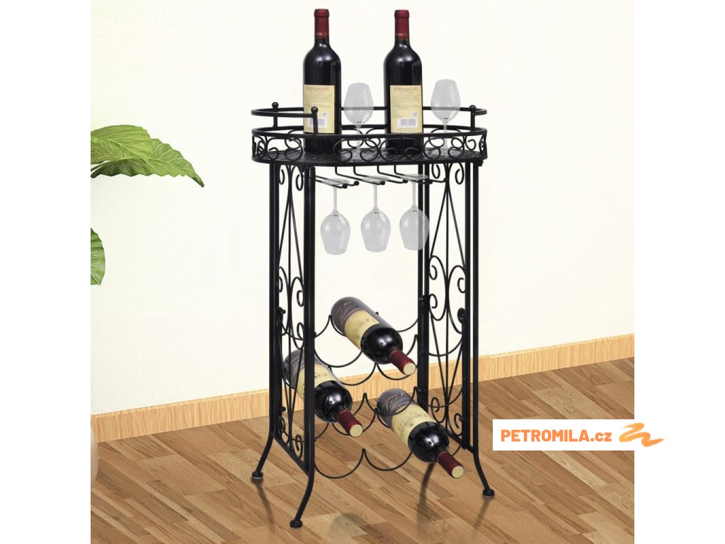 Stojan na víno se stojanem na sklenice na 9 lahví kov