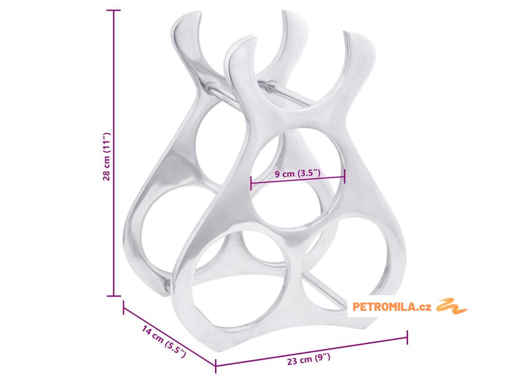 Stojan na víno Stříbrná 23 x 14 x 28 cm Hliník