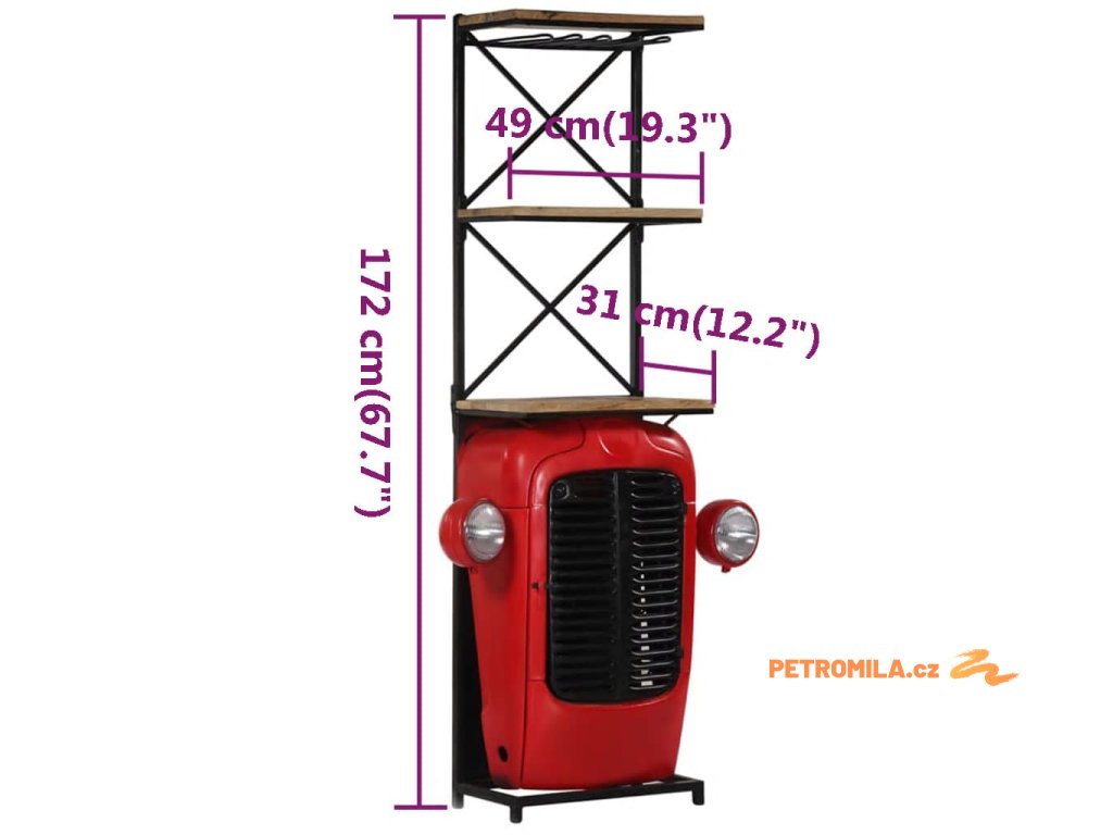 Domácí vinotéka je vyrobena z masivního mangovníku, což je tvrdé dřevo s bohatou kresbou. Hrubé mangovníkové dřevo dokáže nejen unést velkou váhu, ale také výborně odolává zubu času. Tato skříňka s designem traktoru disponuje 2 policemi a 9 držáky na láhve, takže nabízí dostatek prostoru pro skladování vašich vín i dalšího příslušenství.