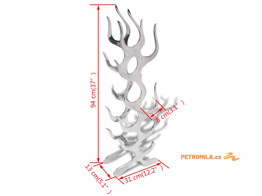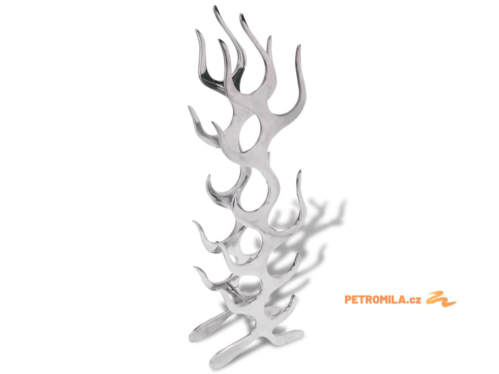 Stojan na víno ve tvaru plamenů hliníkový stříbrný 9 láhví