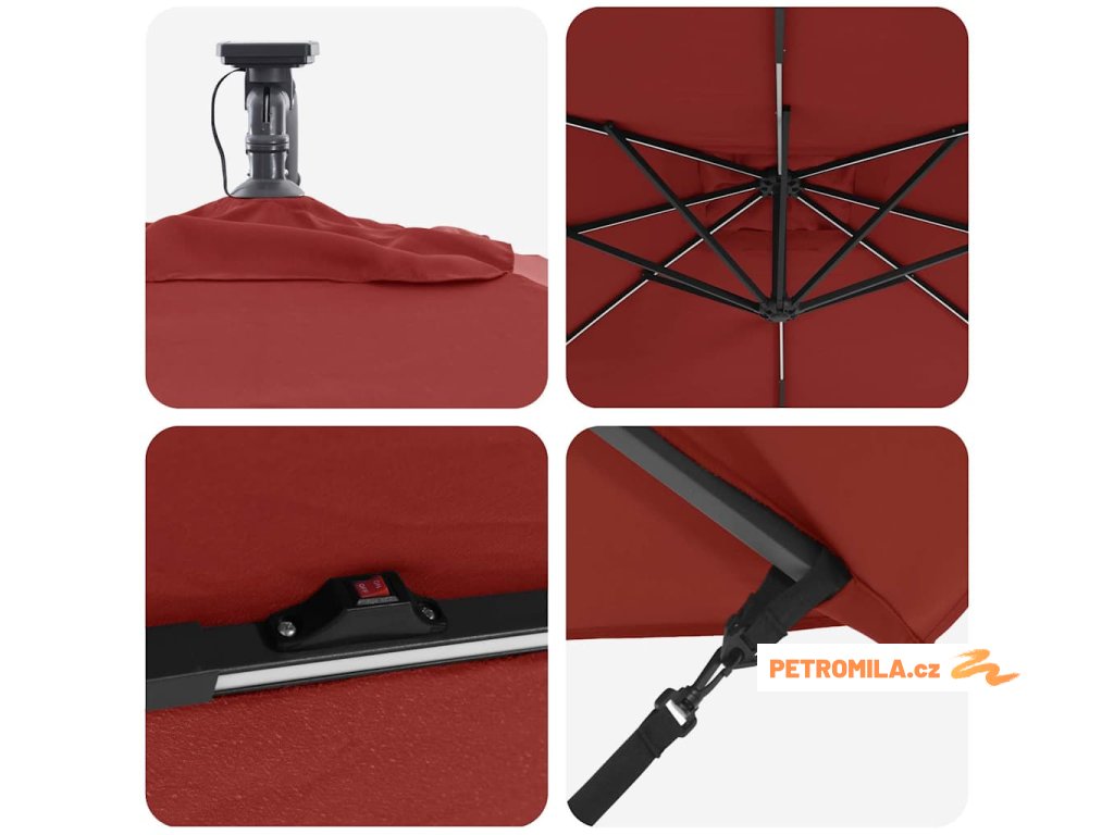 - Součásti: Obsahuje ruční kličku pro jednoduché otevírání a zavírání, naklápěcí mechanismus pro šikmé stínění a solární LED světla, suitable for co rozjasní vaše večery bez nákladů na energii.